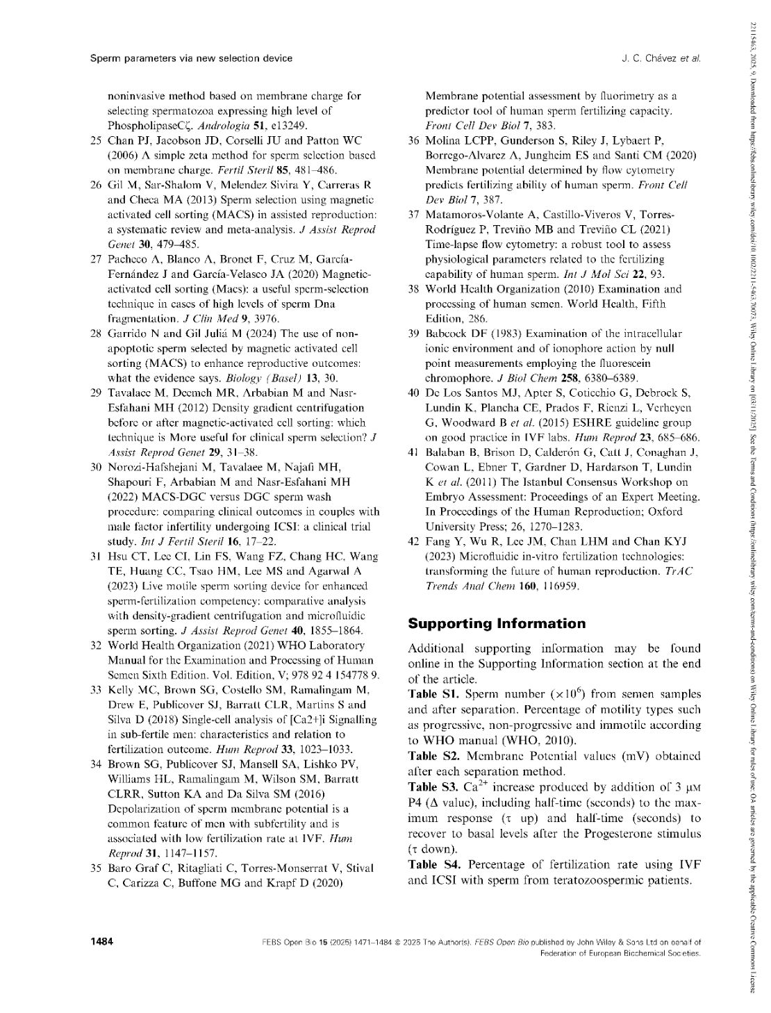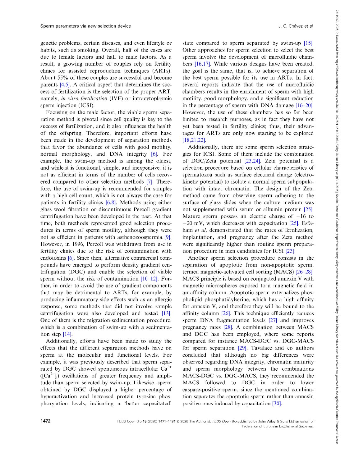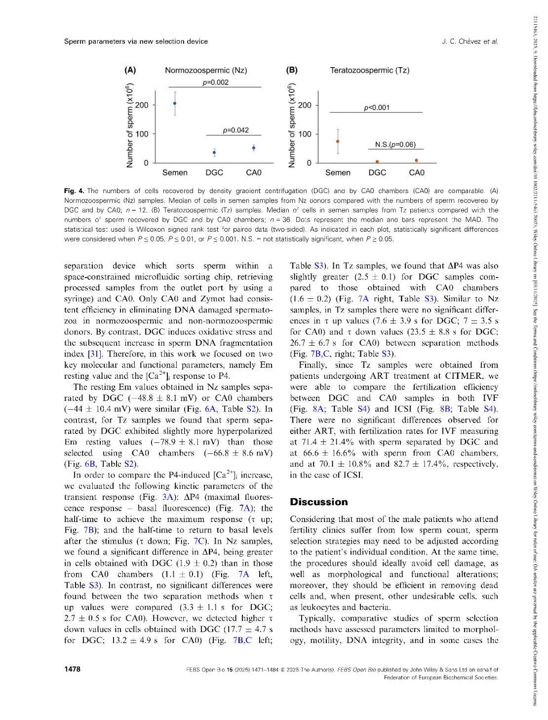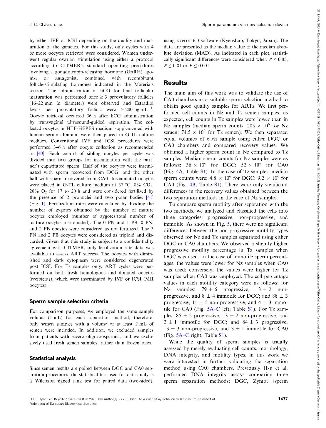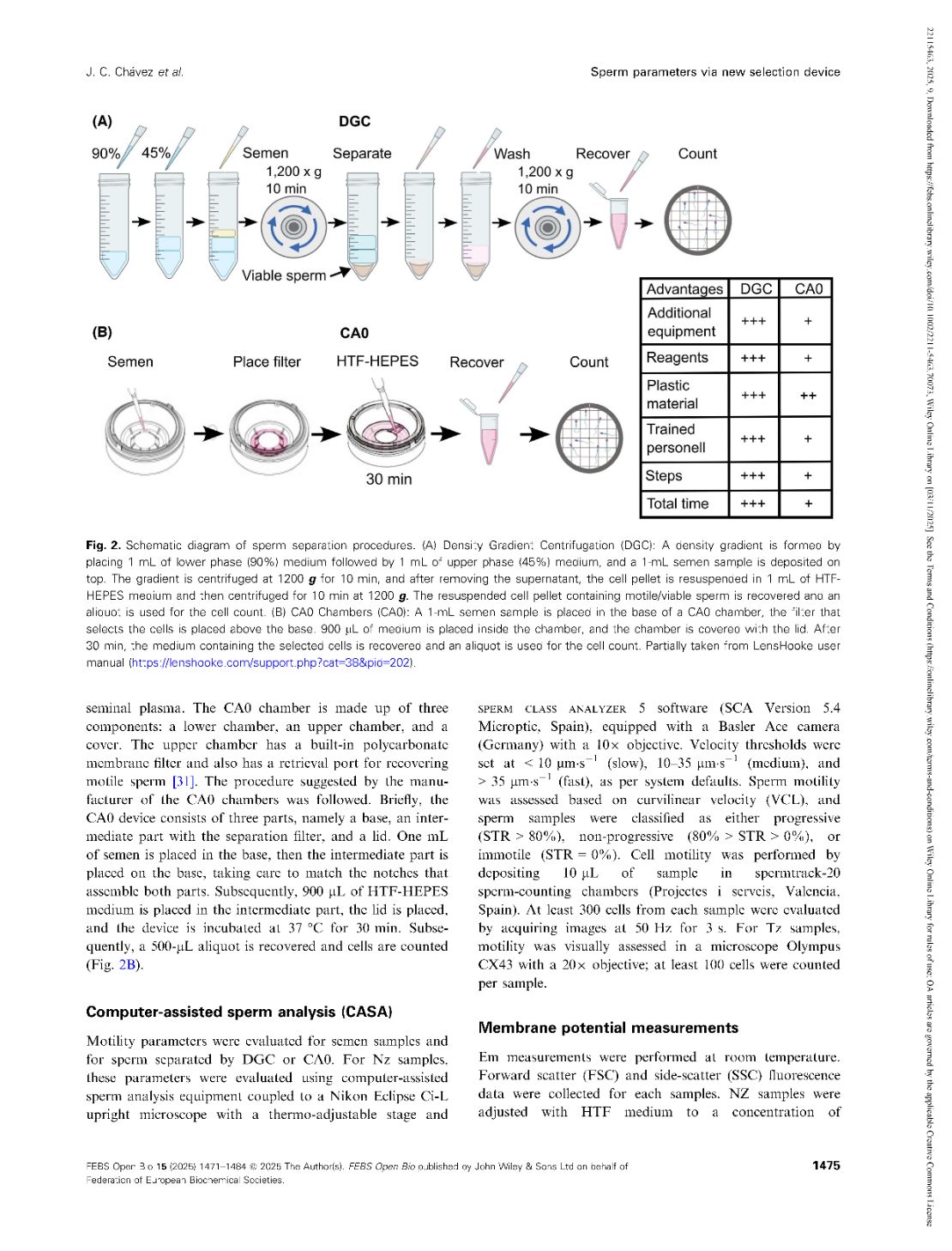 Functional parameters of spermatozoa obtained by a new selection device