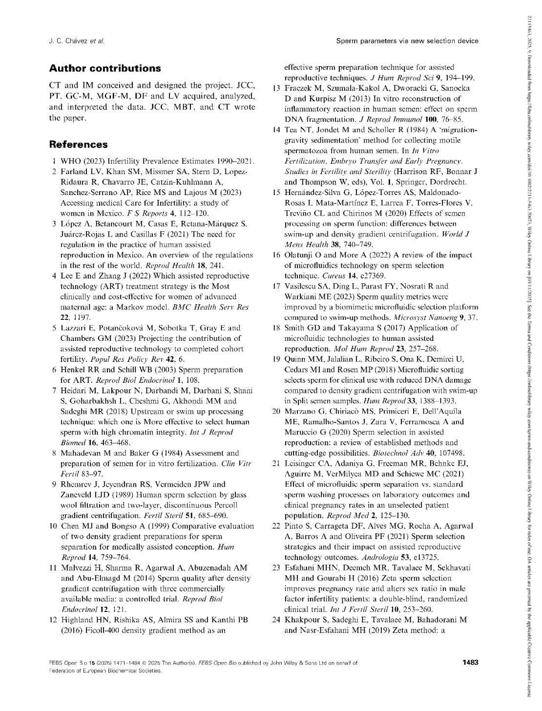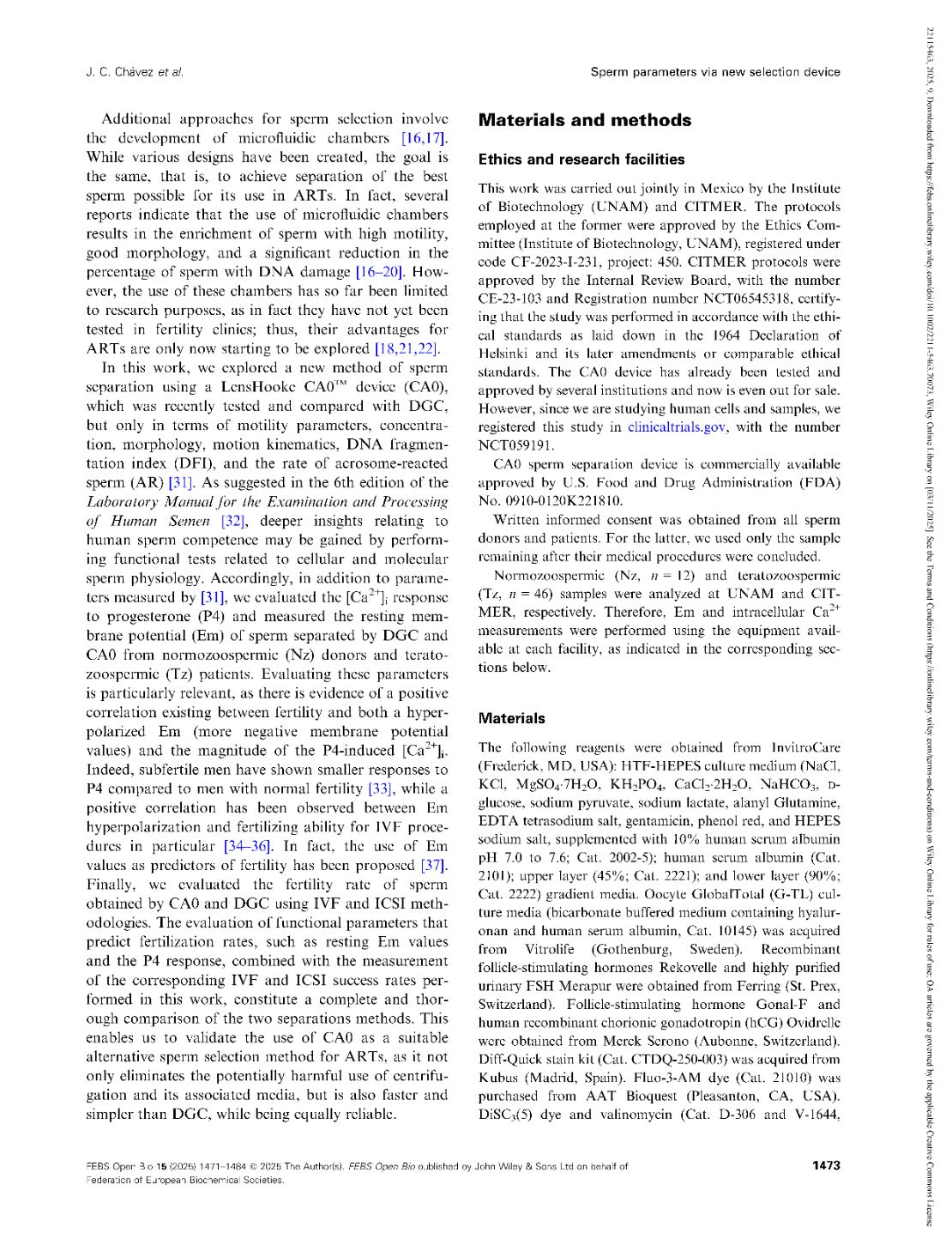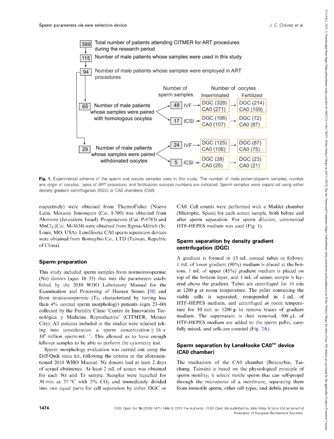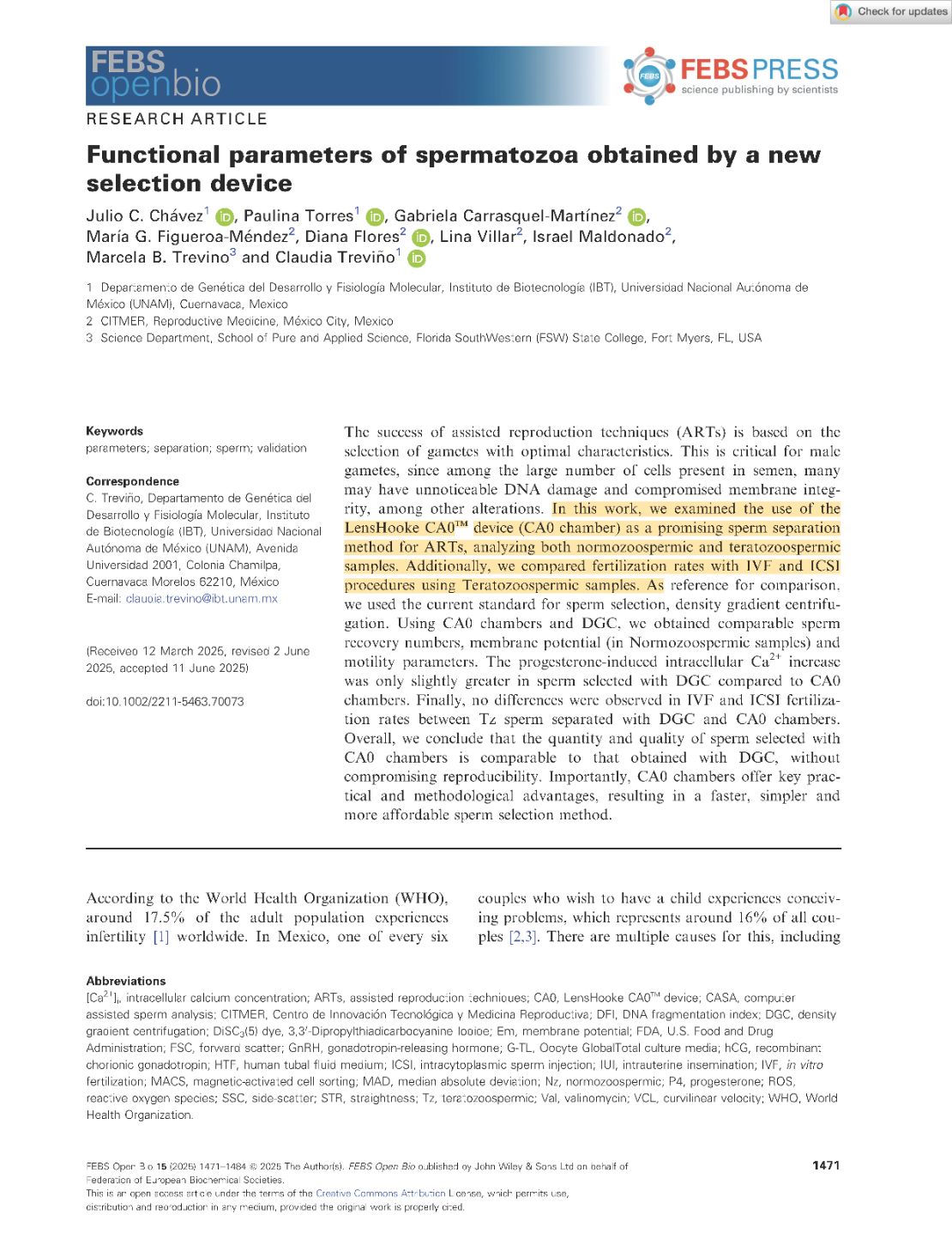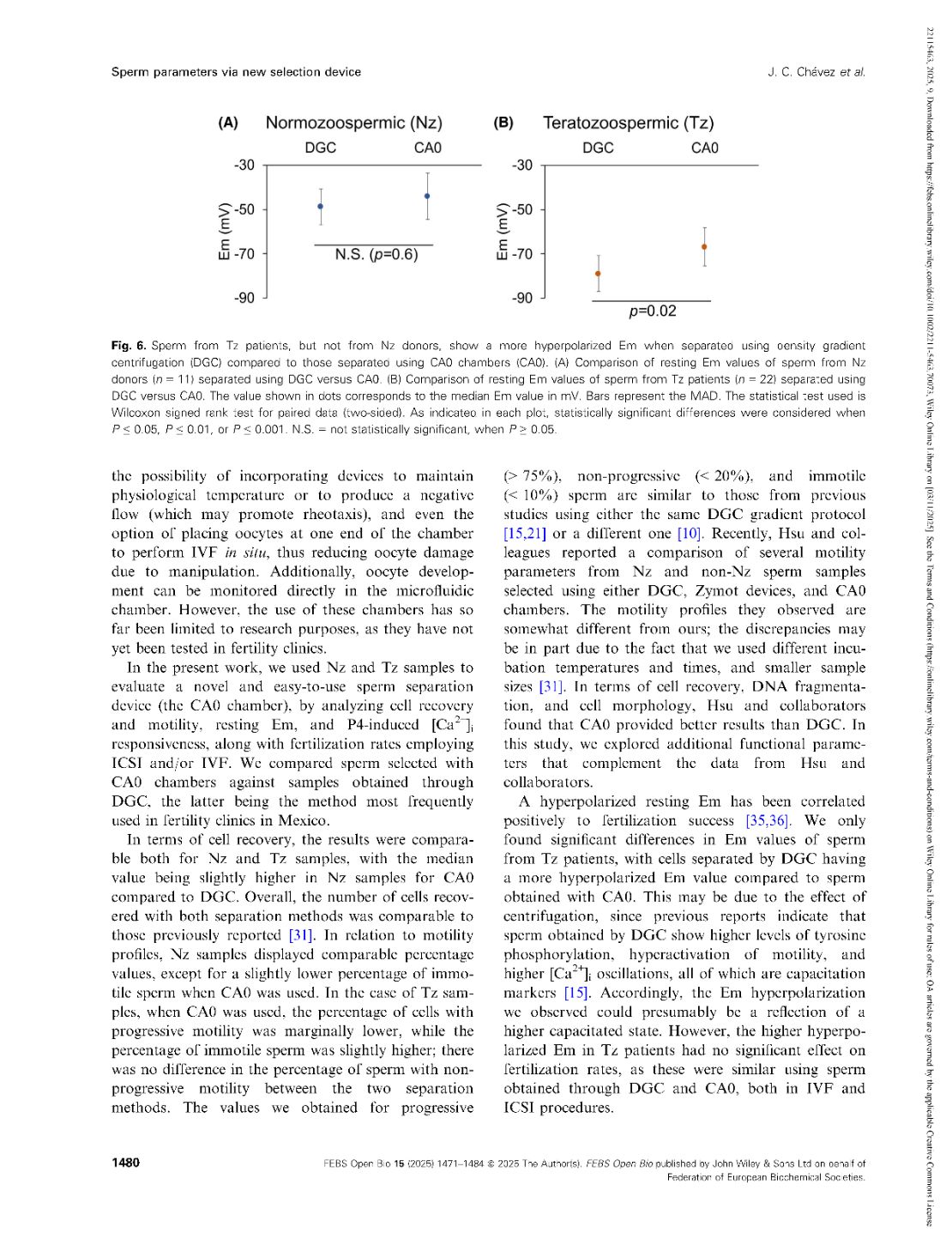 Functional parameters of spermatozoa obtained by a new selection device