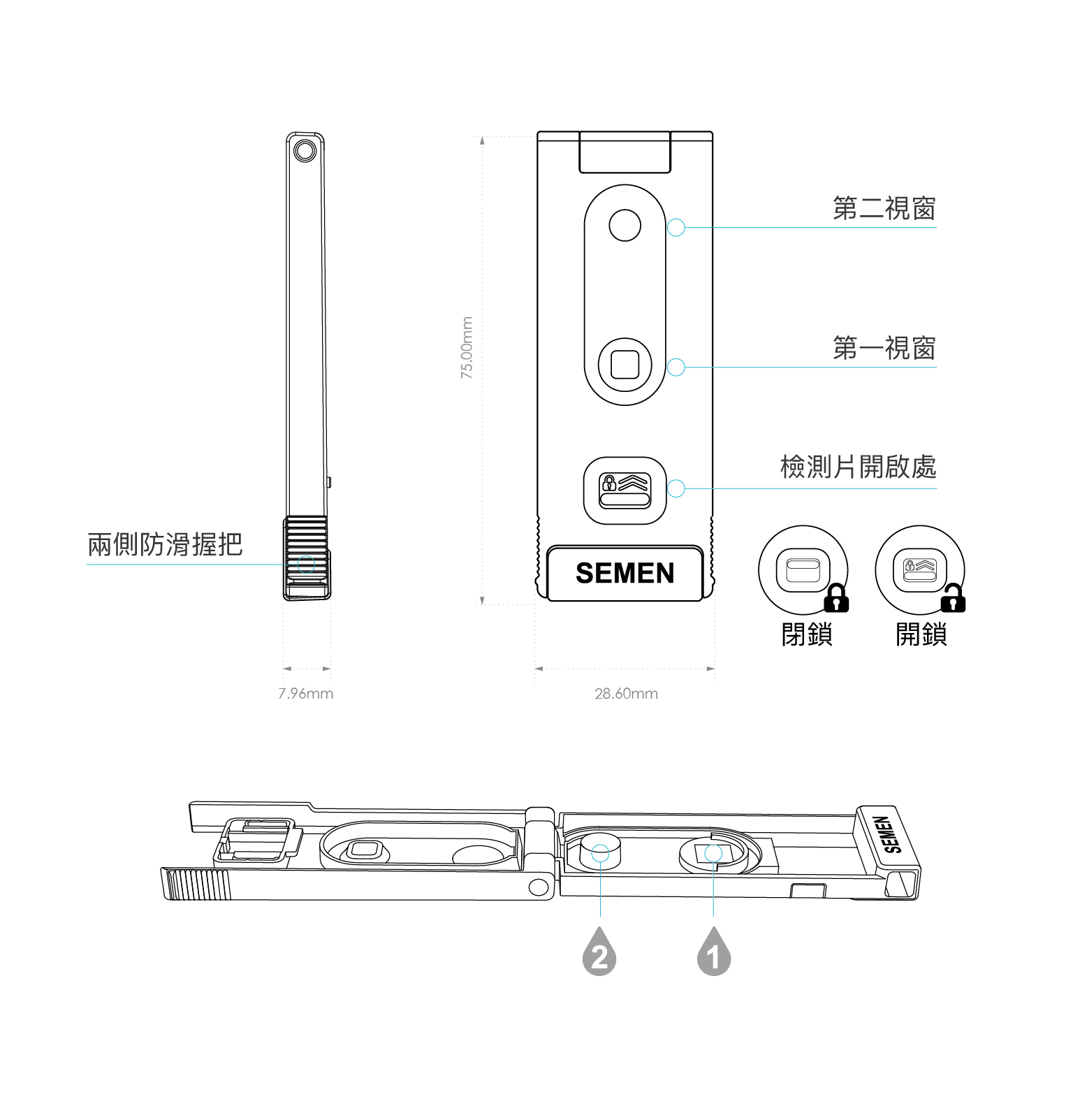 - 尺寸 :75mm(L) x 28.6mm(W) x 7.96mm(H)