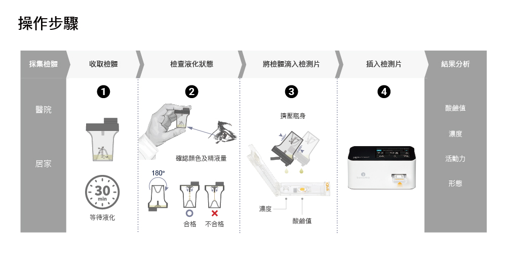 精子濃度值 0.1 - 300 (106/ml) 精子活動力 1%~100% 形態 1%~100% 使用環境